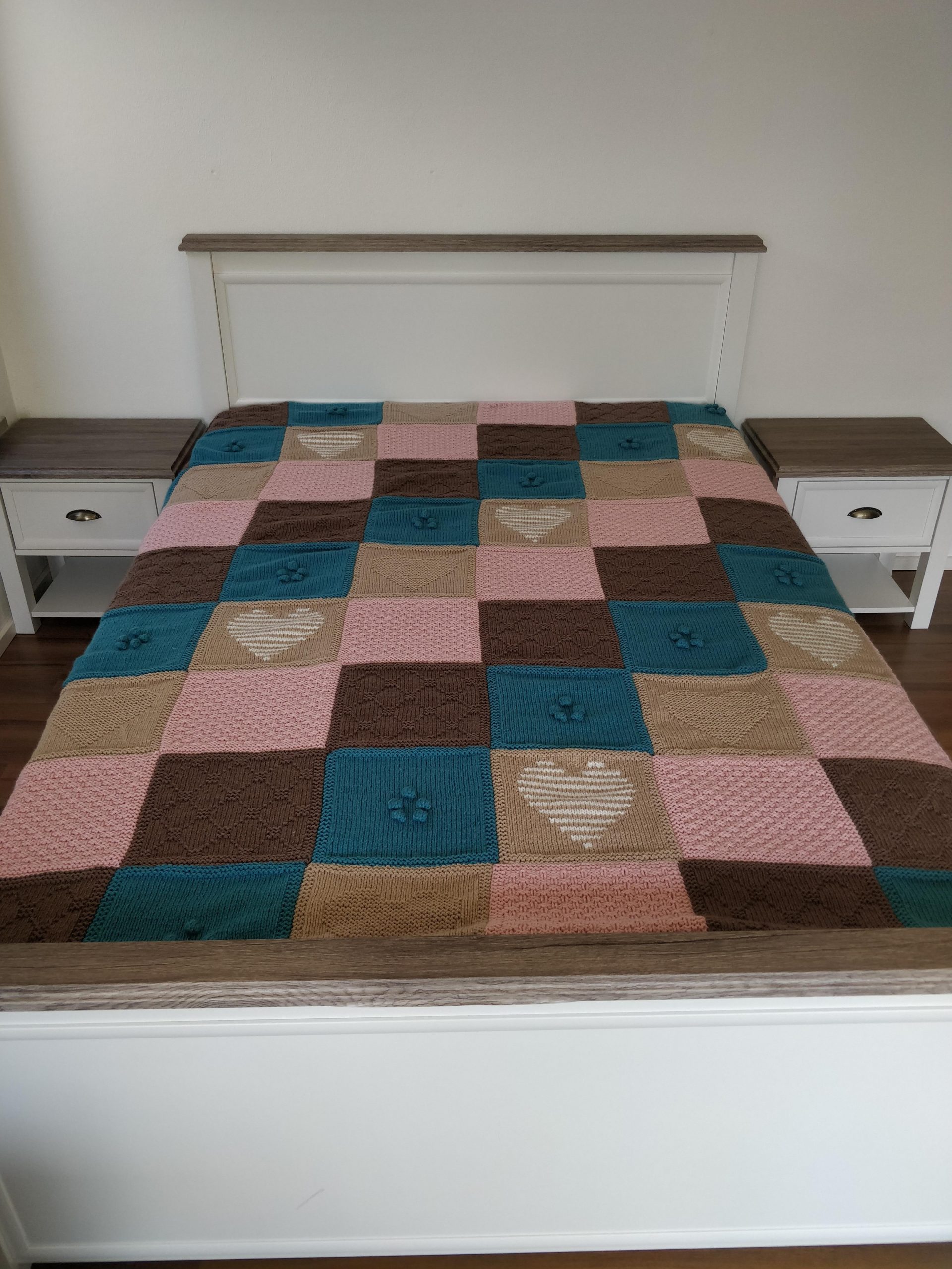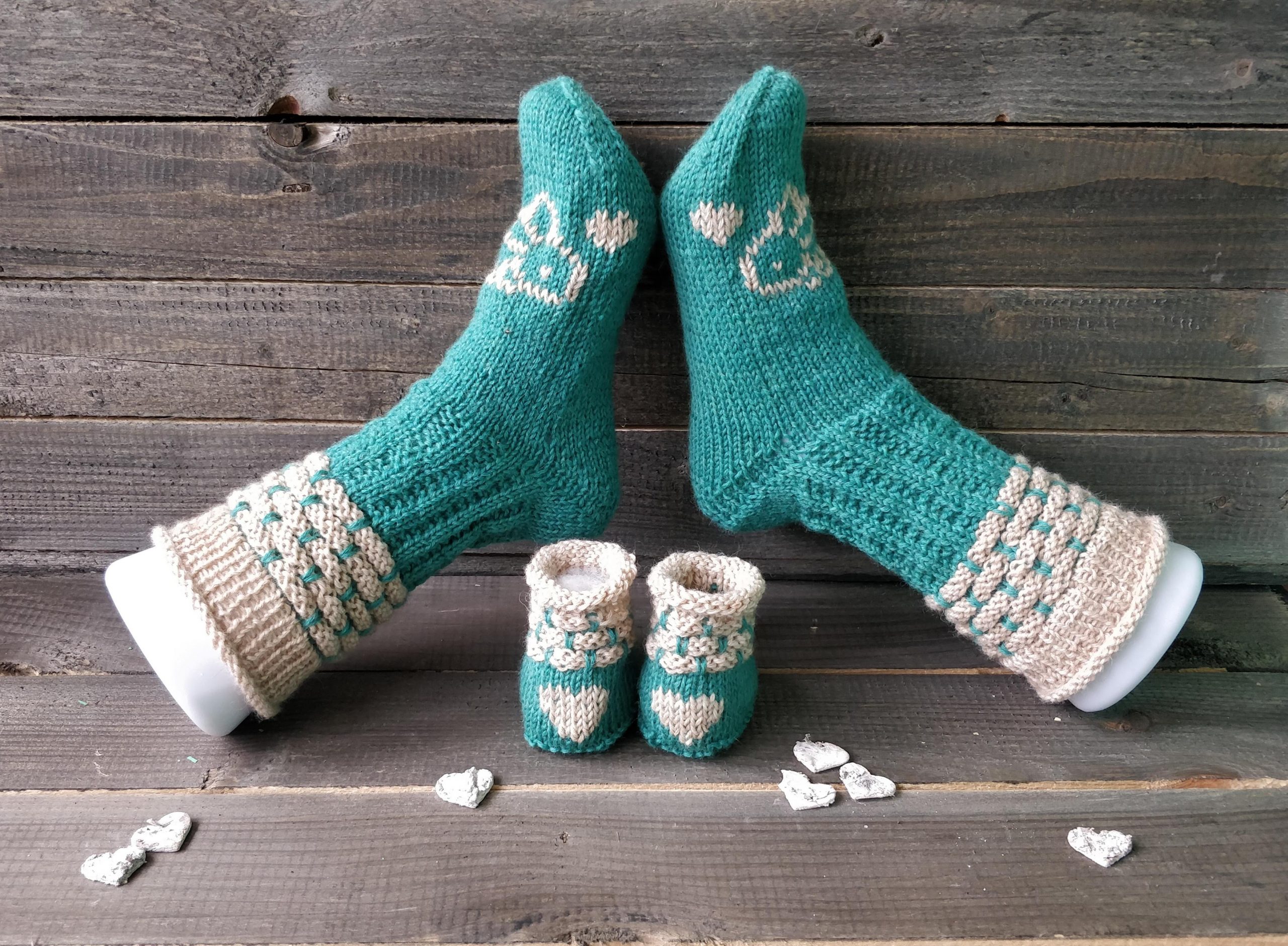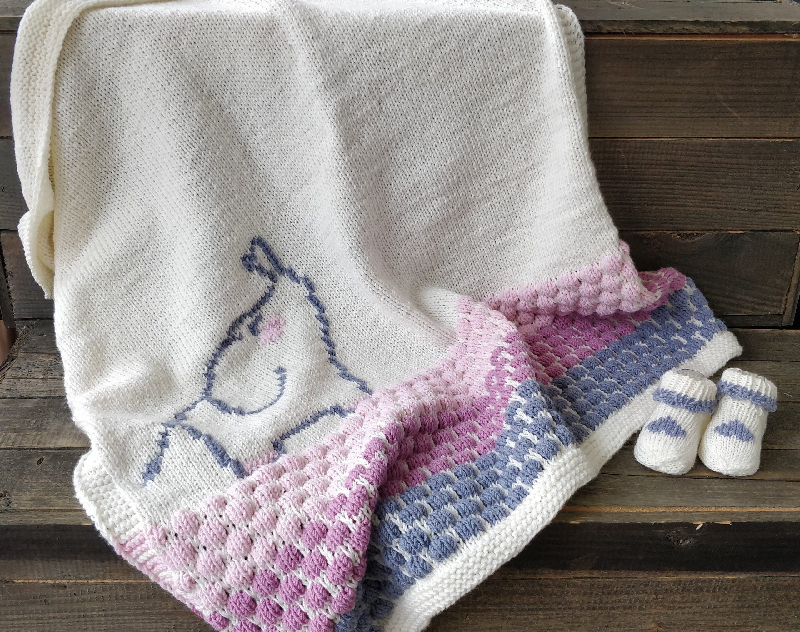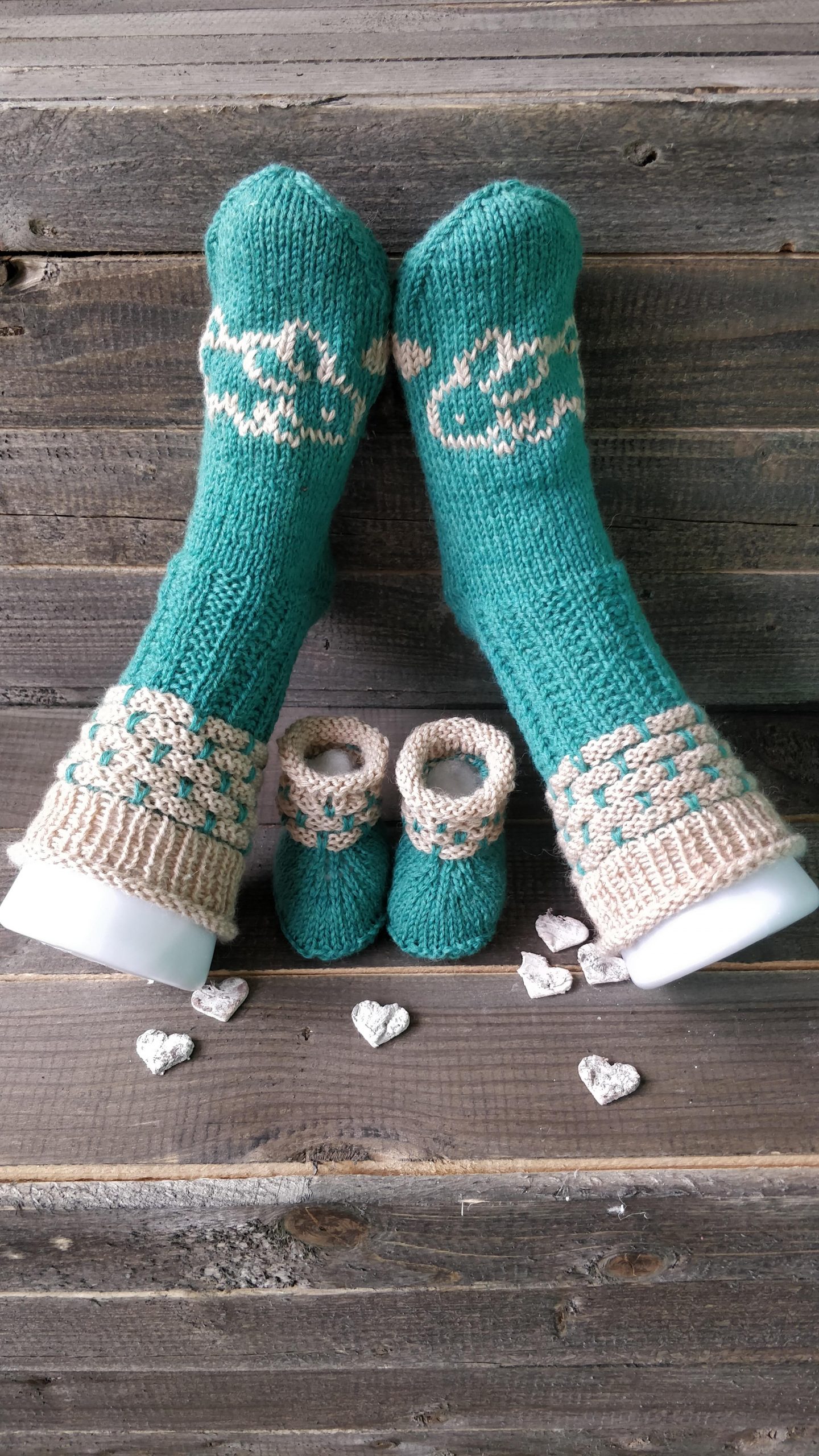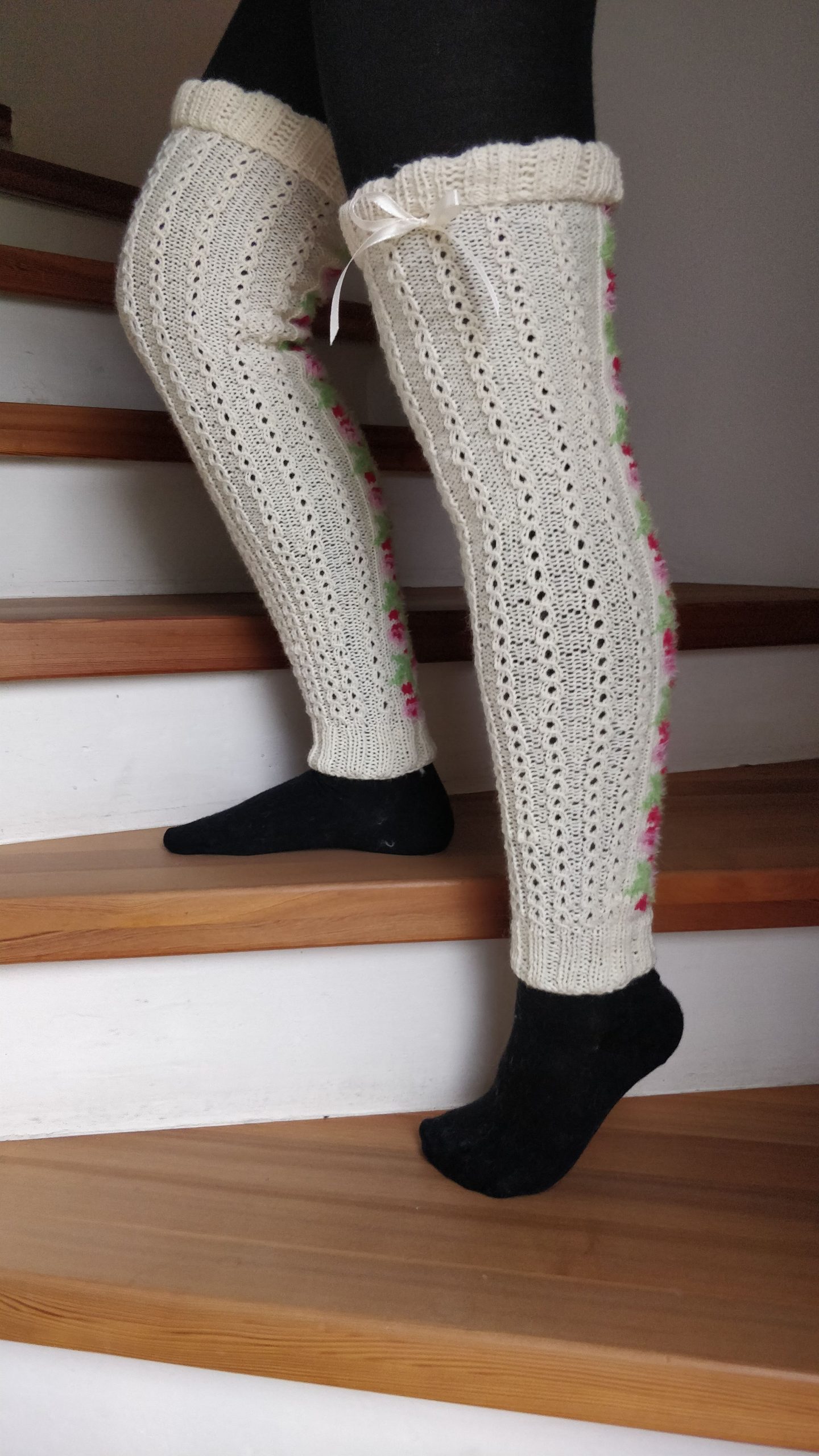 Handgestrickte Babydecke mit Söckchen 70 cm x 75 cm Decke aus Drops Baby Merino. Die von Ihnen gewünschten Namen werde ich einsticken!Preis : 120,– €BabysöckchenLänge 8 cmPreis : 15,– €. Handgestrickte boho Strickjacke Kuschelig warm.Material :Supergarne Aktivwolle Pflegeleicht in 30 Grad Maschine waschbar. Länge 100 cm /Modell 170 cm /Preis : 85,– € Handgestrickte Tagesdecke, Einzelstück Größe :220 x220 cm. Passend für Doppelbett. Material : Schachenmayr Soft&EasyMaschinen Waschbar 30 GradPreis : 320,– € Poncho mit Schafe Material :Drops Cotton Merino+Lana Grossa Silkhair Maß :Halsausschnitt – Spitze unten 72cmPreis 120,–€Pflege :Maschinenwäsche im Schonwaschgang 40°C / Keinen Weichspüler verwenden / Liegend trocknen Overknees Gr. : 37/39 Preis : 45,- € Homesocks Gr. : 36/38Preis je Paar : 30,- € Homesocks Gr. : 38/40Preis je Paar : 31,- € Homesocks Gr. : 40/42Preis je Paar : 34,- €(Bärensocke OHNE die Babysocken!)