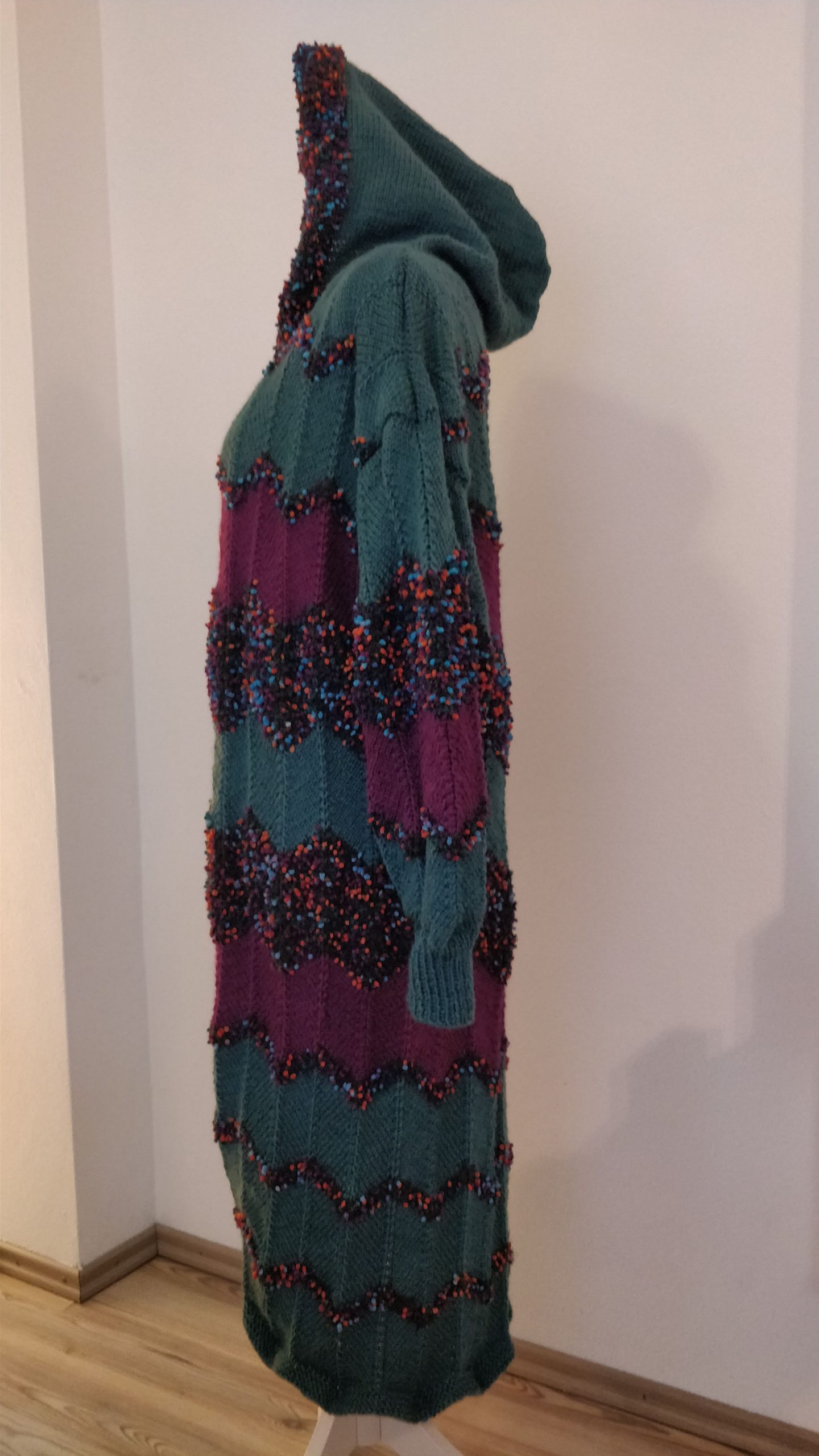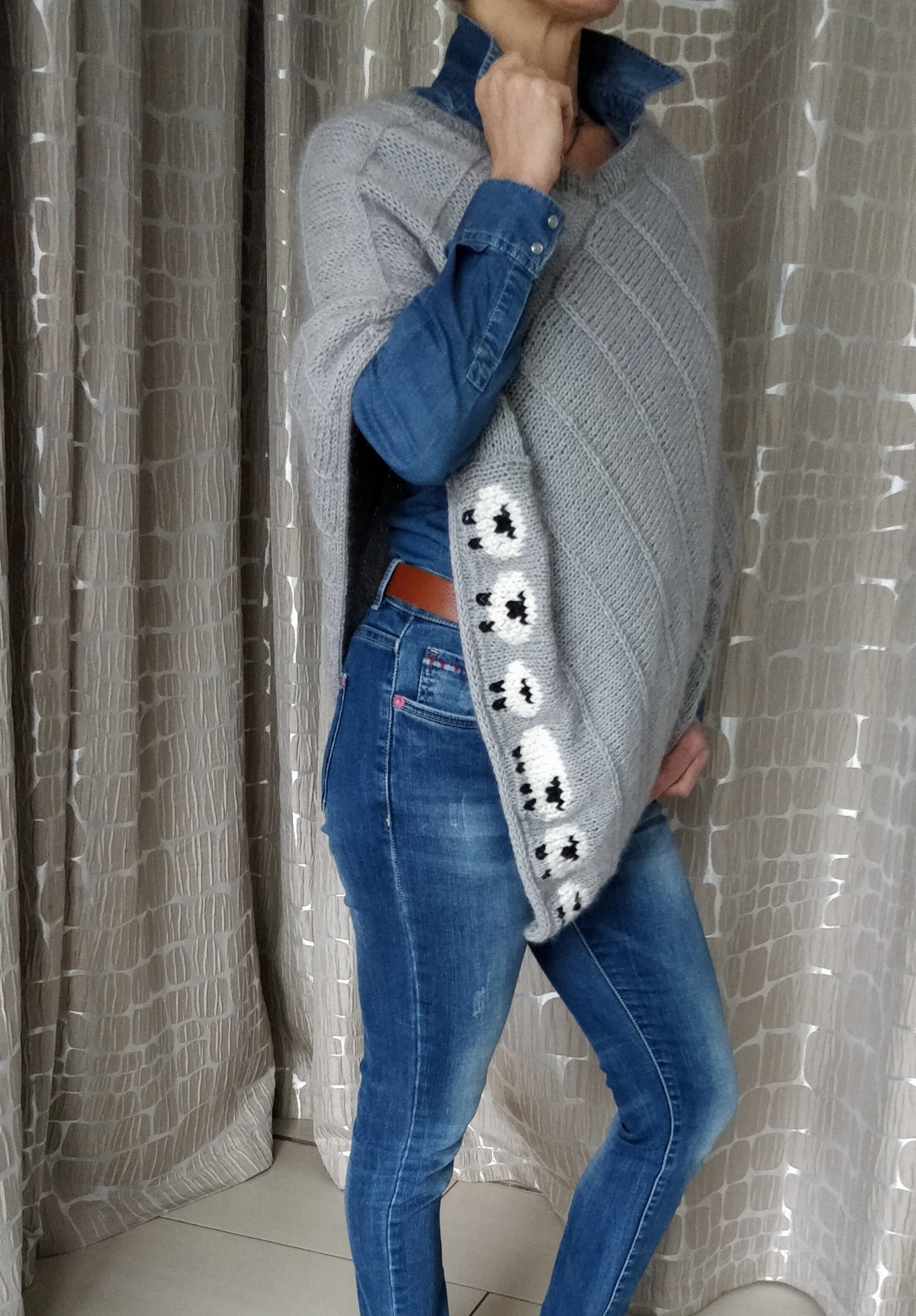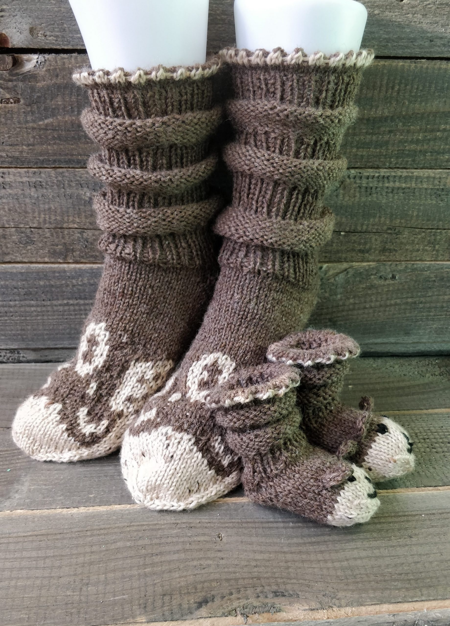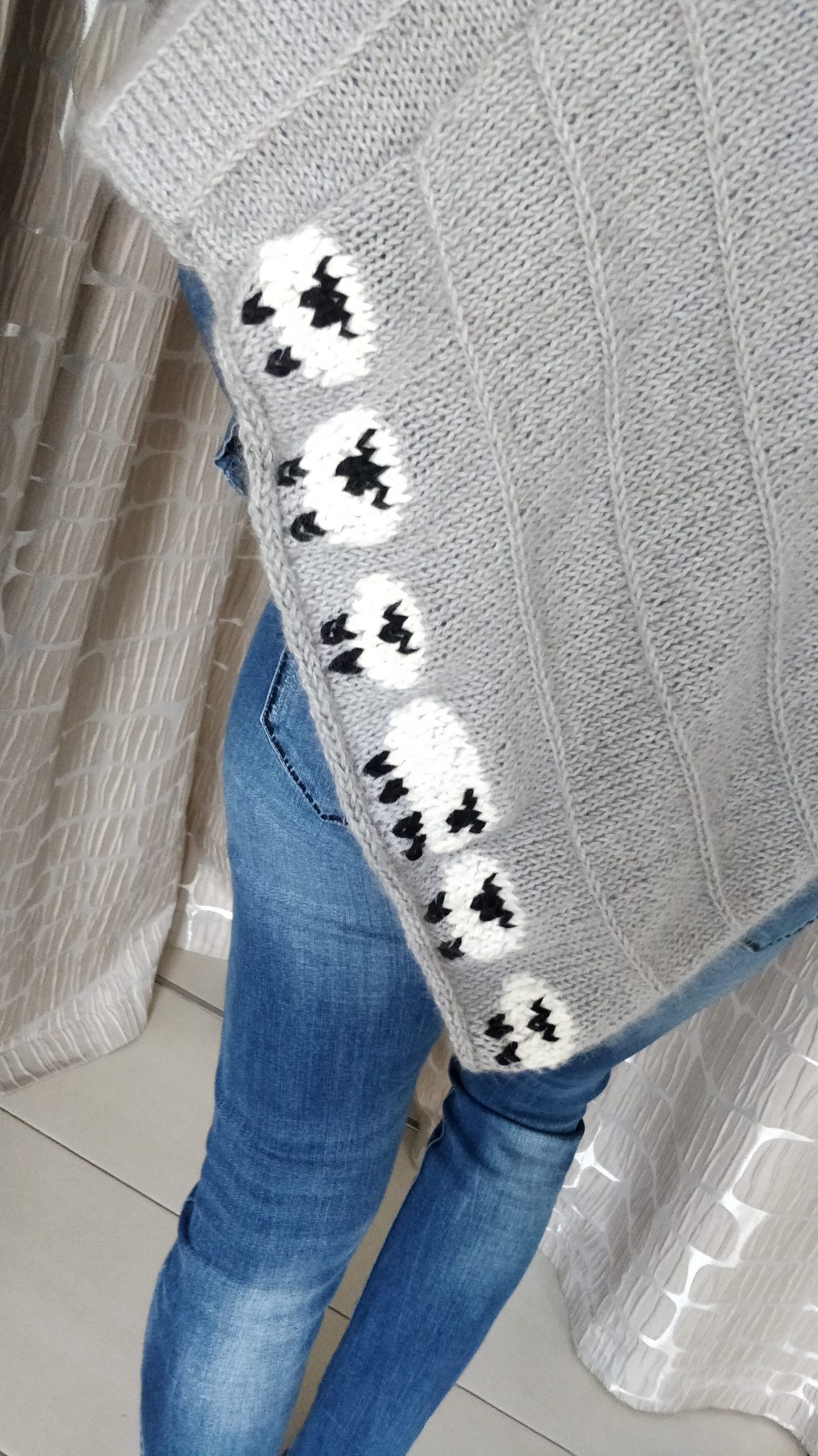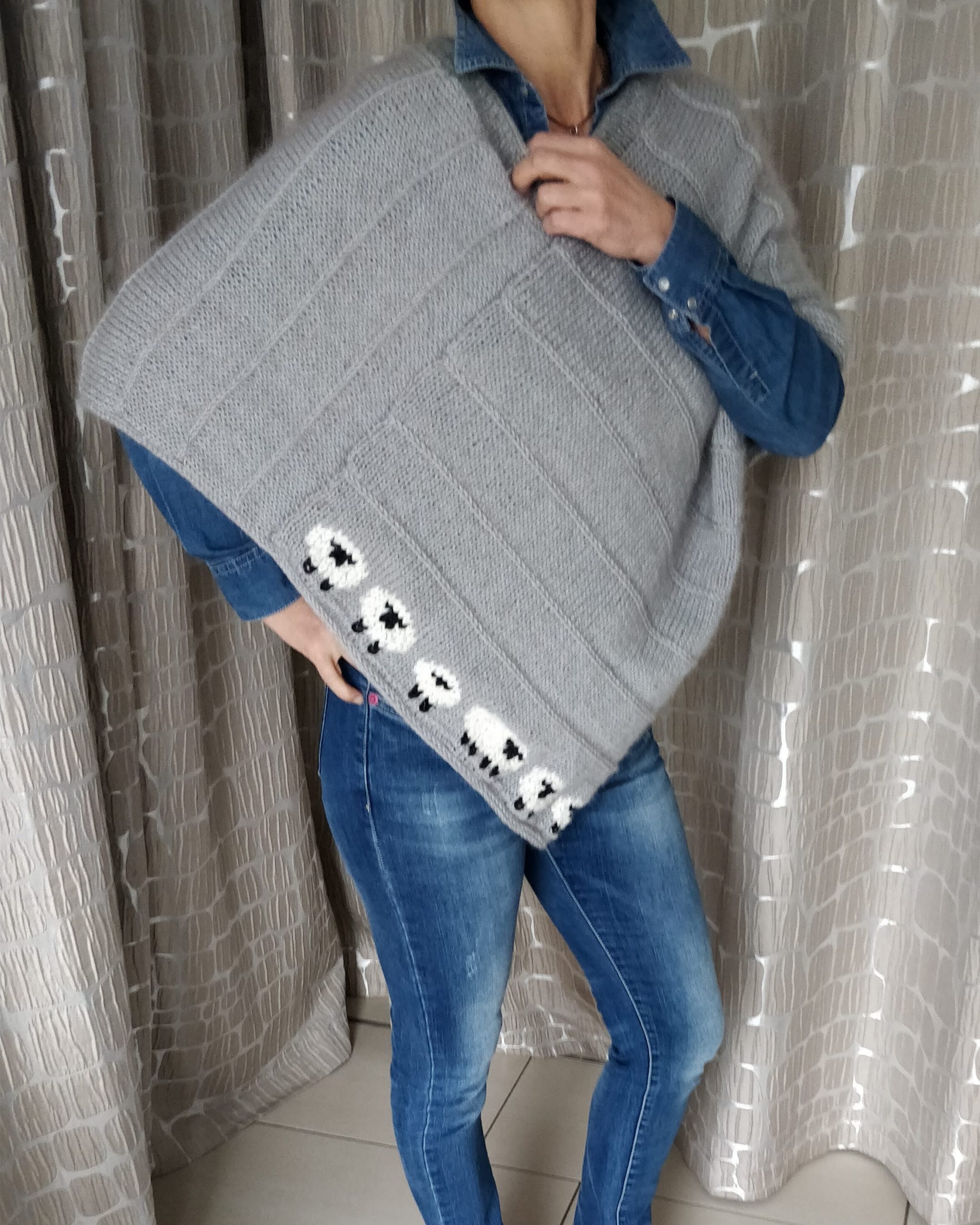 Handgestrickte Babydecke mit Söckchen 70 cm x 75 cm Decke aus Drops Baby Merino. Die von Ihnen gewünschten Namen werde ich einsticken!Preis : 120,– €BabysöckchenLänge 8 cmPreis : 15,– €. Handgestrickte boho Strickjacke Kuschelig warm.Material :Supergarne Aktivwolle Pflegeleicht in 30 Grad Maschine waschbar. Länge 100 cm /Modell 170 cm /Preis : 85,– € Handgestrickte Tagesdecke, Einzelstück Größe :220 x220 cm. Passend für Doppelbett. Material : Schachenmayr Soft&EasyMaschinen Waschbar 30 GradPreis : 320,– € Poncho mit Schafe Material :Drops Cotton Merino+Lana Grossa Silkhair Maß :Halsausschnitt – Spitze unten 72cmPreis 120,–€Pflege :Maschinenwäsche im Schonwaschgang 40°C / Keinen Weichspüler verwenden / Liegend trocknen Overknees Gr. : 37/39 Preis : 45,- € Homesocks Gr. : 36/38Preis je Paar : 30,- € Homesocks Gr. : 38/40Preis je Paar : 31,- € Homesocks Gr. : 40/42Preis je Paar : 34,- €(Bärensocke OHNE die Babysocken!)